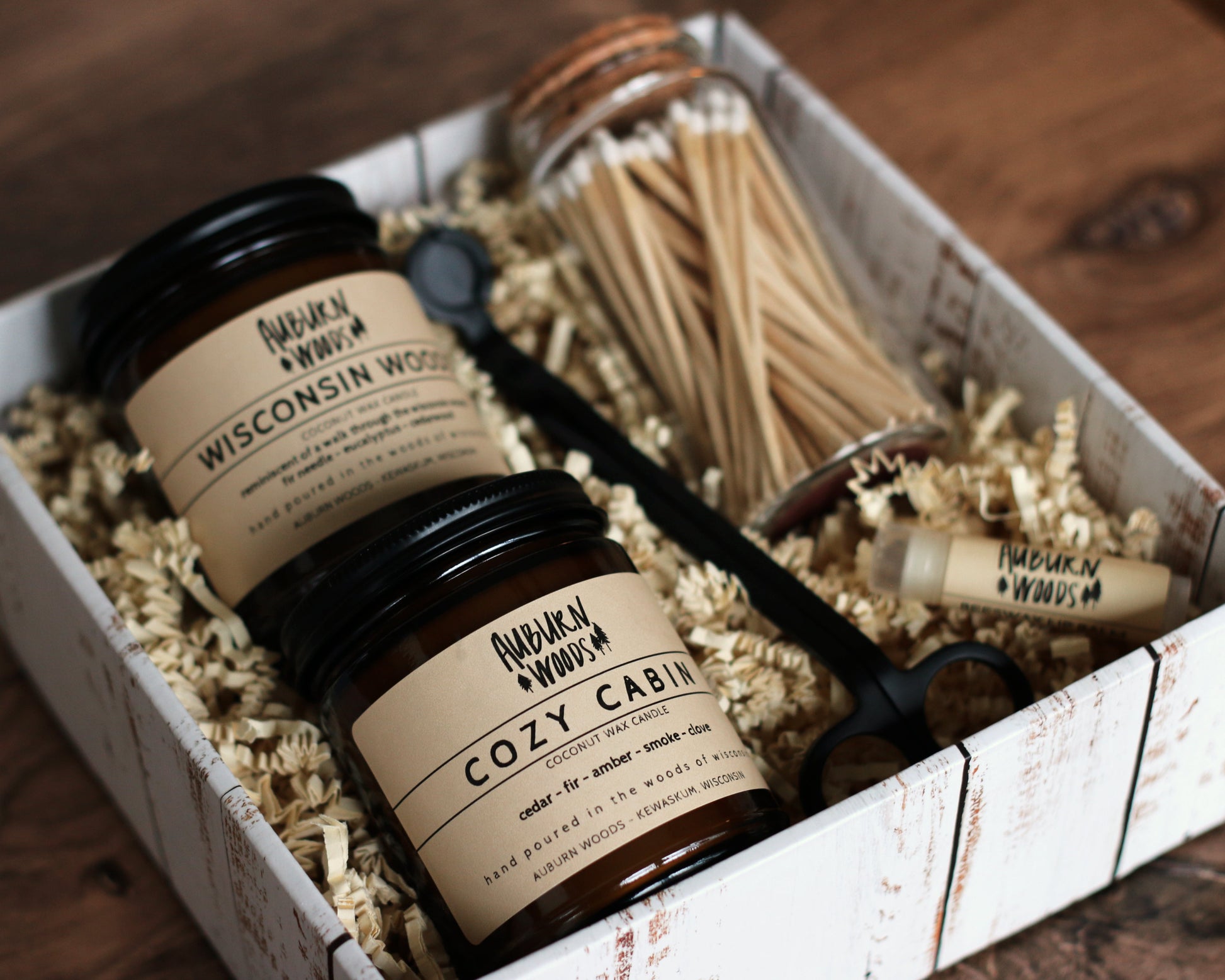 This complete set has everything a candle lover needs - Cozy Cabin & Wisconsin Woods candles.