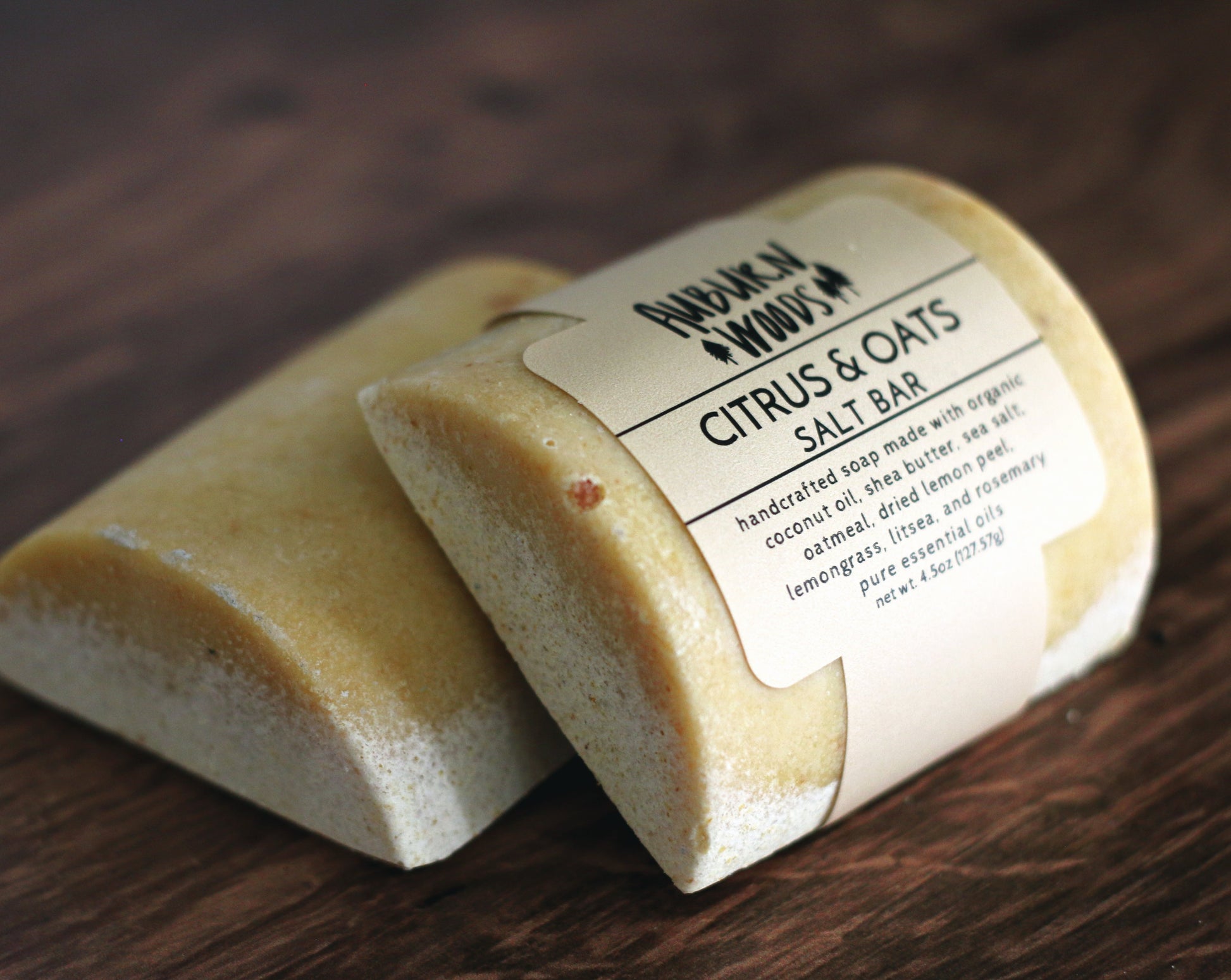 Our salt bars are made with oil, butters, sea salt, and pure essential oils. Salt bars smooth like a river rock and so good for your skin. The Java Mint and Citrus Oatmeal are more exfoliating.