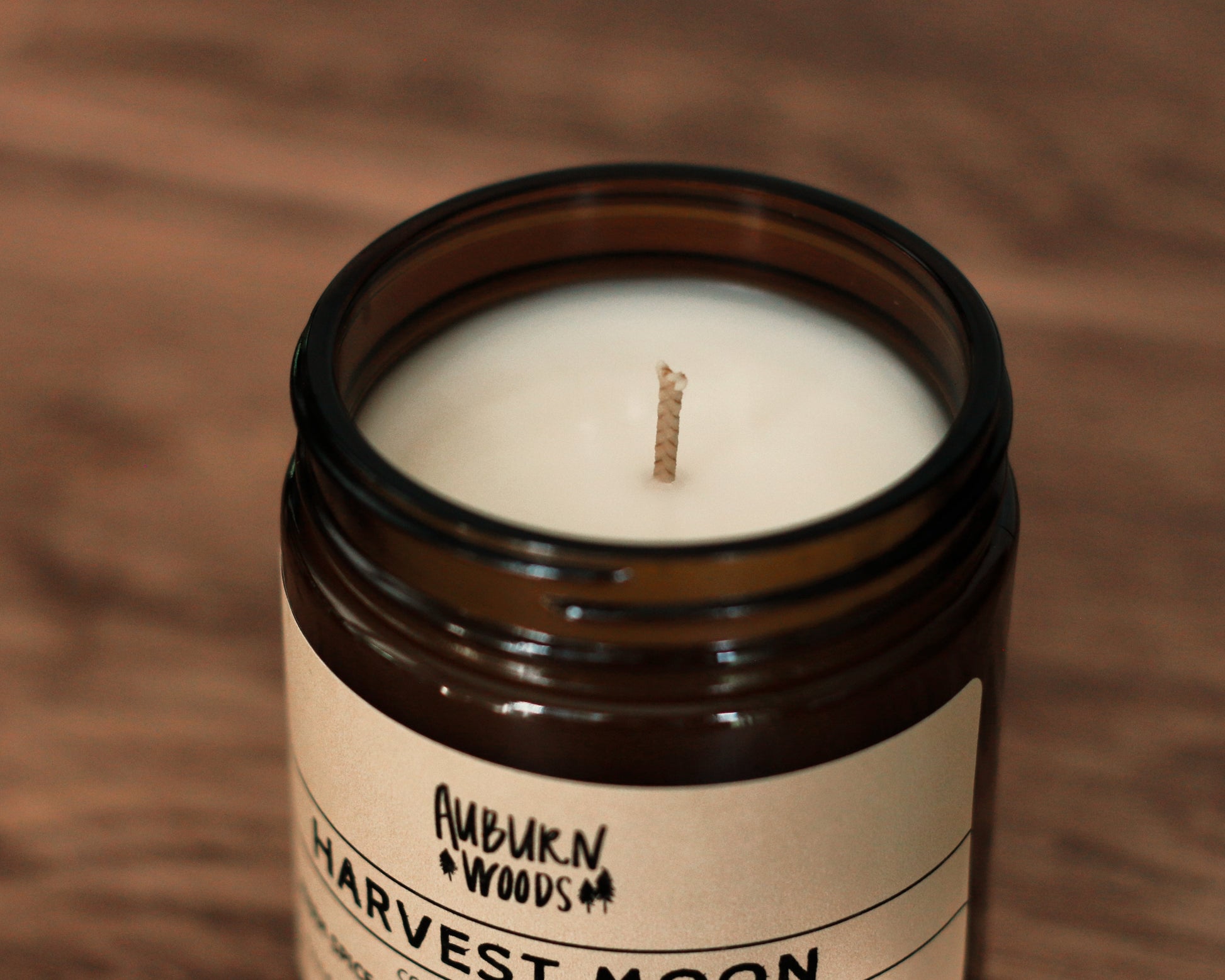 SMALL 8oz amber jar with cotton wick - 40+ hours burn time