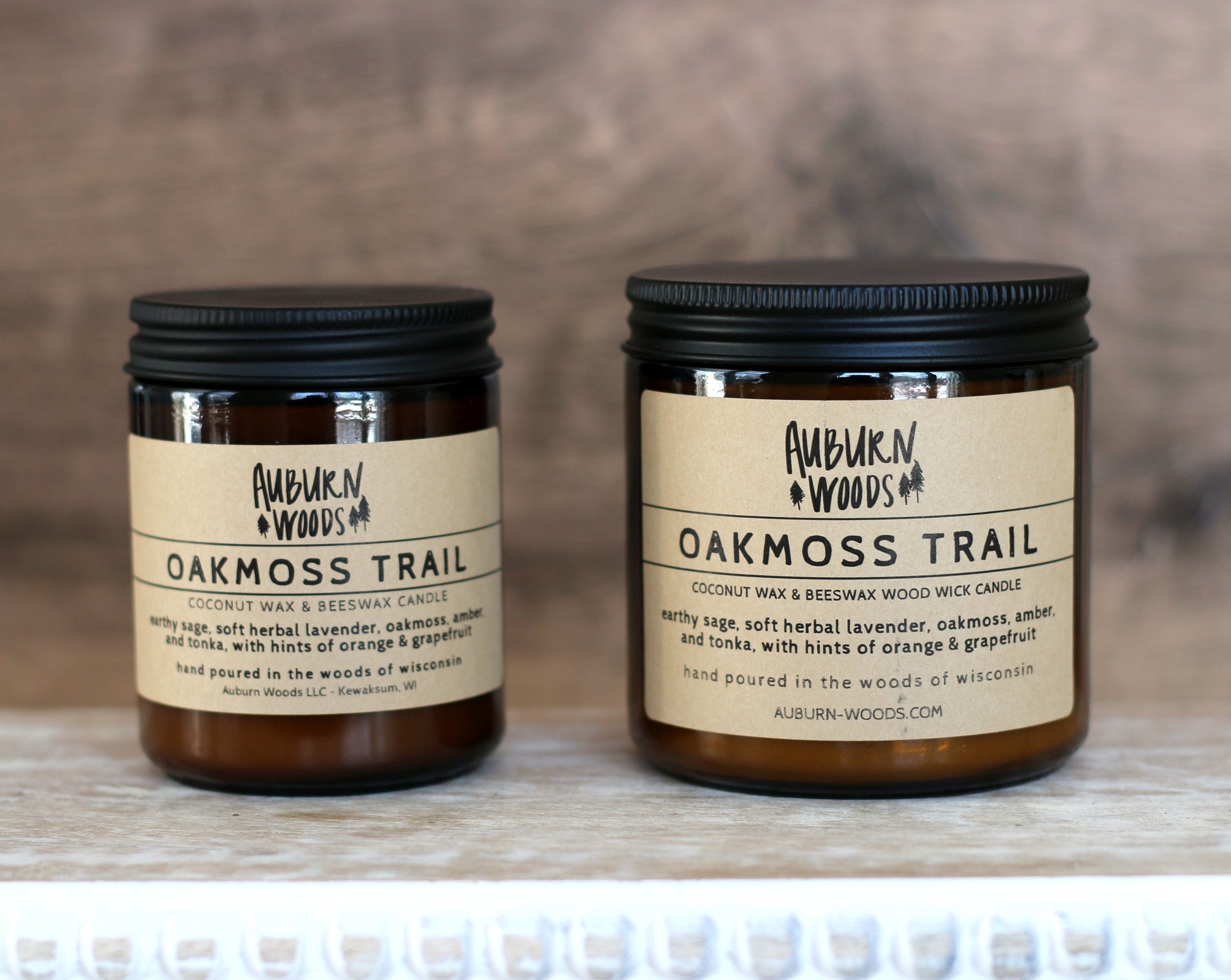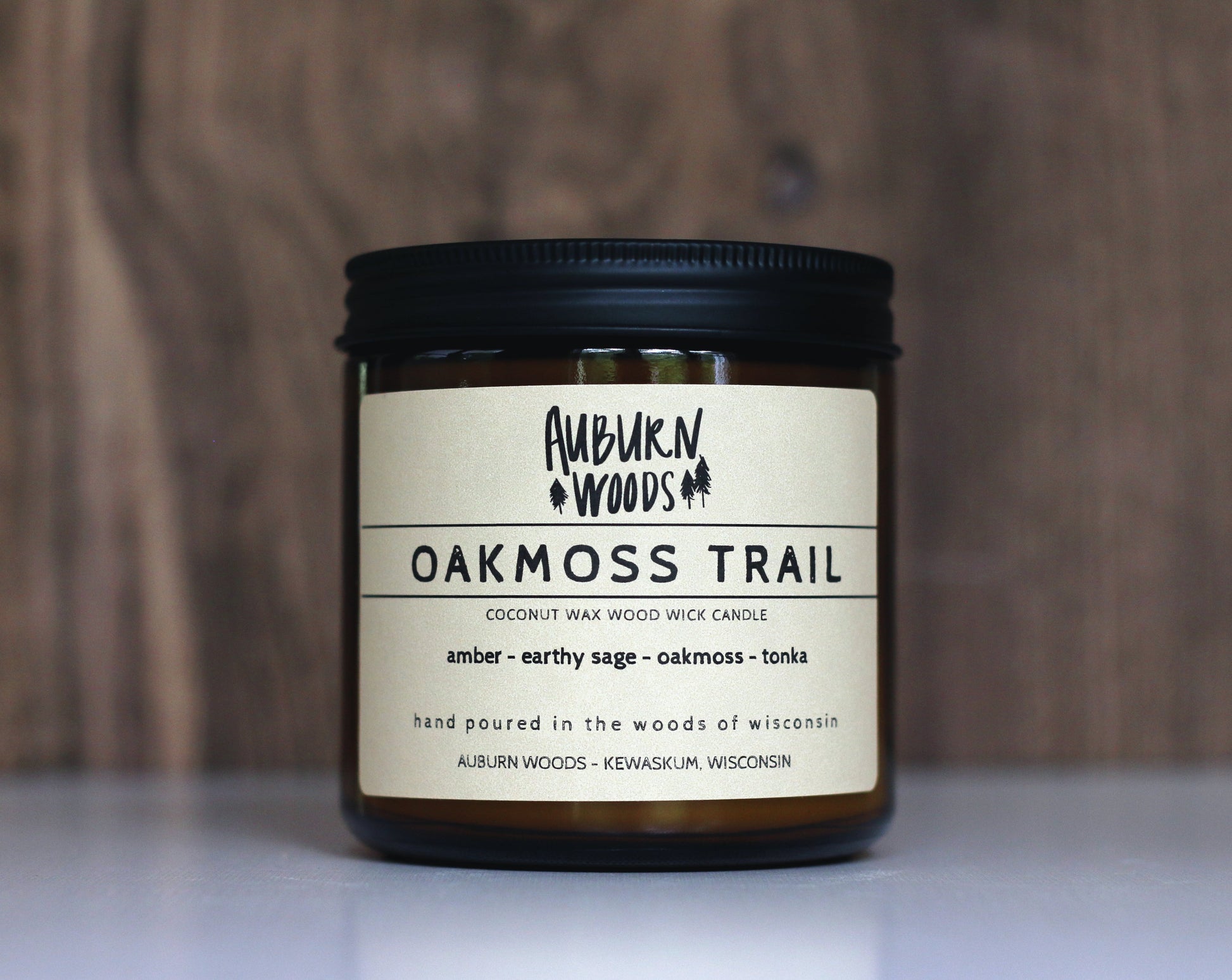 LARGE - 16oz amber jar with wood wick - 80+ hours burn time